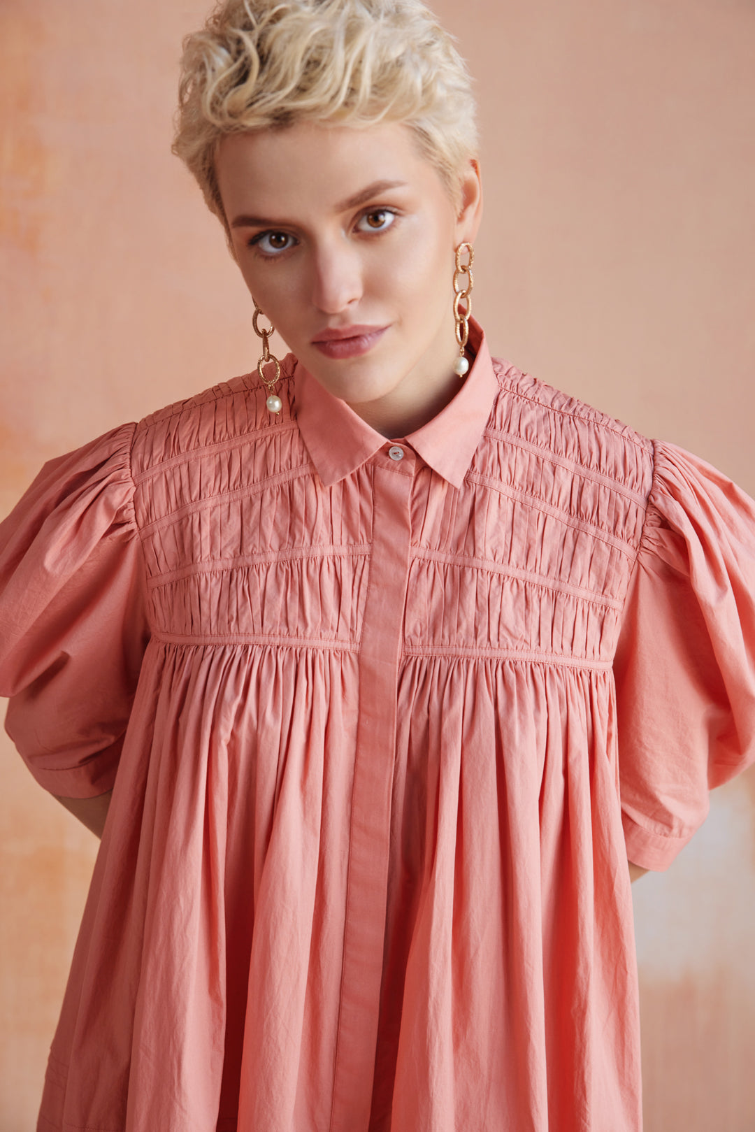 Effortless chic meets playful charm in our Short Shirt Dress with puff sleeves. The relaxed silhouette and trendy puff sleeves create a fashionable look for casual outings.